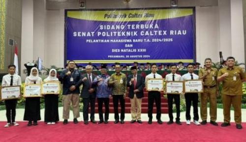 Selasa, 20-08-2024 - 15:55:10 WIB Riau12.com-PEKANBARU- Politeknik Caltex Riau (PCR) resmi melantik 938 mahasiswa baru.Pelantikan ini dilakukan langsung oleh Direktur PCR Dr. Dadang Syarif Sihabudin Sahid S.Si., M.Sc. pada Sidang Terbuka Senat (STS) yang dilaksanakan Selasa (20/8/2024) di Gedung Serba Guna (GSG).Pelantikan mahasiswa baru ini dilakukan luring, dihadiri seluruh...(read more)