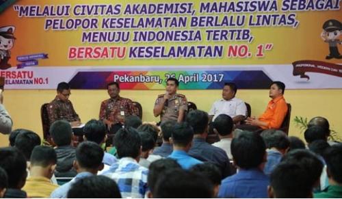 Jumat, 28-04-2017 - 10:38:28 WIB Riau12.com-PEKANBARU-Direktorat Lalu-lintas Polda Riau menggelar seminar bersama civitas akademika dan mahasiswa Universitas Muhammadiyah Riau (UMRI). Seminar yang bertajuk mahasiswa sebagai pelopor keselamatan berlalu lintas menuju Indonesia tertib bersatu keselamatan nomor 1 itu dilaksanakan di Auditorium kampus UMRI Jl KH Ahmad Dahlan No 88...(read more)