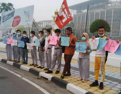 Selasa, 27-10-2015 - 10:58:19 WIB PEKANBARU, Riau12.com-Dengan menggunakan masker standar dan memegang kertas bertuliskan "Jokowi Save Riau" dan "Rawat Korban Asap" belasan siswa siswa yang mengatasnamakan diri mereka Aliasi Pelajar Independen (API) menggelar aksi diam di tugu Zapin tepatnya di depan kantor Gubernur Riau, Selasa (27/10/2015).Ditegaskannya,...(read more)