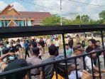 Ratusan warga yang masih emosi mendatangi kantor desa untuk menemui Kepala Desa Rambah Tengah Hulu.