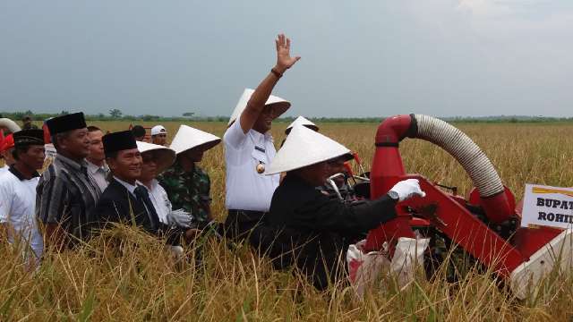 KUBU,Riau12.com-Bupati Rohil Suyatno panen raya di Teluk Piyai, Kecamatan Kubu sambil menyerap aspirasi. Petani disana minta agar ada dam serta pengairan yang baik untuk mengairi sawah mereka.