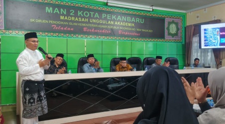 “Madrasah telah sejak lama hadir di Indonesia, bahkan jauh sebelum Indonesia merdeka, maka kita harus pertahankan madrasah ini. Saat rapat di DPR RI, Saya menolak untuk pengahapusan kata Madrasah dalam regulasi sistem pendidikan di Indonesia. Madrasah menjadi bagian penting dalam sistem Pendidikan di Indonesia maka harus dipertahankan dan diperjuangkan karena bagian upaya untuk peningkatan kualitas pendidikan. Dan ini dapat dilihat sekolah di bawah Kemenag mampu menjadi sekolah unggulan sekolah terbaik di Indonesia, seperti MAN 2 Pekanbaru,†ujar Prof Junaidi.(***)