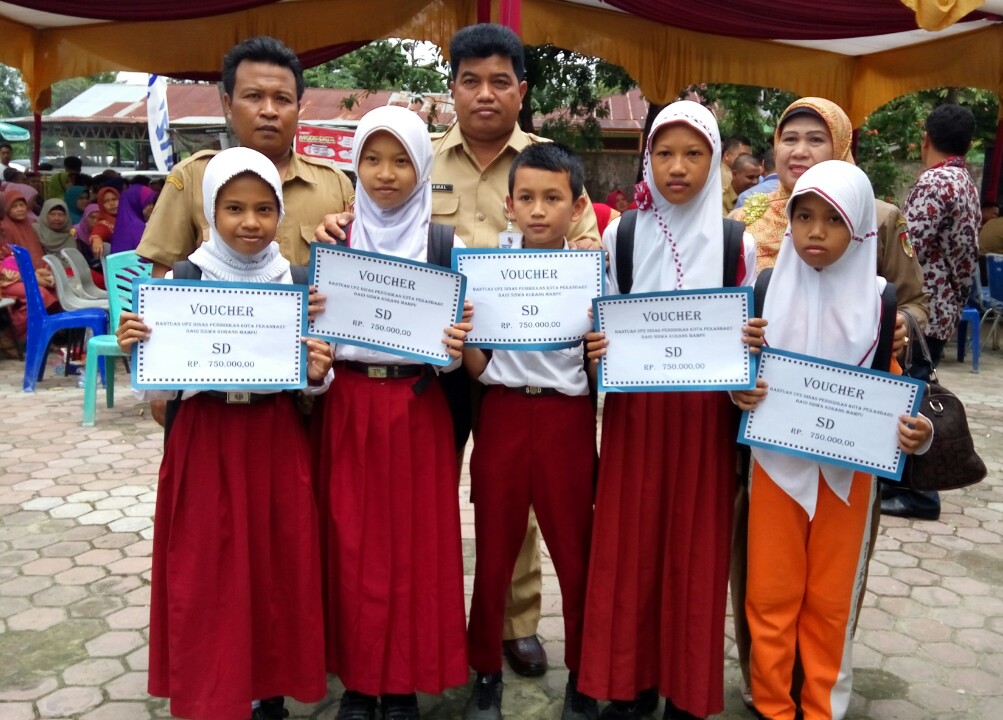Jamal mengatakan, zakat yang diberikan ini untuk seluruh siswa kurang mampu yang ada di kota pekanbaru. Namun, kata Jamal, untuk mendapatkanya, siswa harus mengisi surat keterangan tidak mampu yang di keluarkan oleh dinas melalui pihak sekolah.