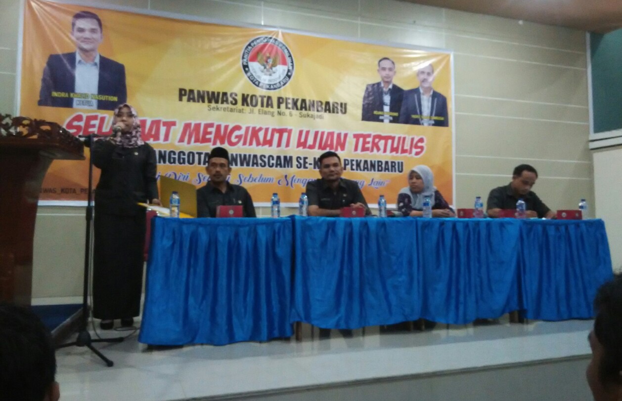 Ketua Panwaslu Kota Pekanbaru, Indra Khalid Nasution kepada sejumlah wartawan, menyatakan tes tertulis berlangsung selama dua jam dan mesti selesai hari ini juga.