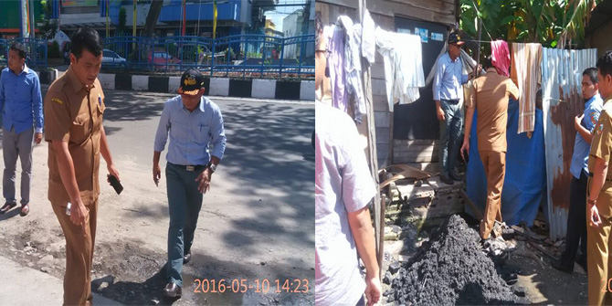 Dikatakannya, kondisi jalan Soedirman yang bergelombang dan parit yang dangkal menjadi penyebab utama terjadinya genangan air. Untuk itu dirinya mengintruksikan kepada seluruh personilnya untuk membongkar parit-parit yang tersumbat itu.