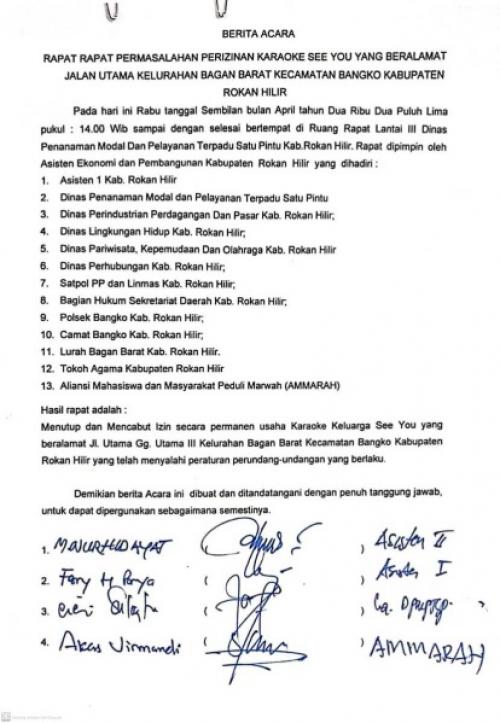 Kamis, 10-04-2025 - 09:31:35 WIB Riau12.com-BAGANSIAPIAPI – Karaoke keluarga See You yang berlokasi di Jalan Utama Gang Utama III, Komplek Ruko Walet, Kelurahan Bagan Barat, Kecamatan Bangko, Kabupaten Rokan Hilir, resmi ditutup secara permanen, Rabu (9/4/2025). Keputusan ini disambut lega oleh masyarakat Bagansiapiapi yang selama ini resah dengan keberadaan...(read more)