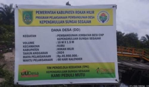 Rabu, 26-02-2025 - 12:01:11 WIB Riau12.com-BAGANSIAPIAPI – Masyarakat Sungai Segajah, Kecamatan Kubu, Kabupaten Rokan Hilir, menyoroti penggunaan Dana Desa oleh Pejabat (PJ) Penghulu Sungai Segajah, Datin NH.Datin NH, yang merupakan ASN di Puskesmas Kubu, dilantik oleh Bupati Rokan Hilir, Afrizal Sintong, sebagai PJ Penghulu beberapa waktu lalu. Selama...(read more)