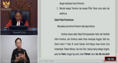 Selasa, 04-02-2025 - 15:58:09 WIB PEKANBARU -Riau12.com - Mahkamah Konstitusi menggelar sidang perkara Perselisihan Hasil Pemilihan (PHP) yang diajukan oleh berbagai pasangan calon kepala daerah Kabupaten Rokan Hilir.Sidang berlangsung di Gedung Mahkamah Konstitusi Republik Indonesia (MKRI) Lantai 2 dengan agenda utama pengucapan putusan atau ketetapan.Sidang lanjutan yang digelar...(read more)